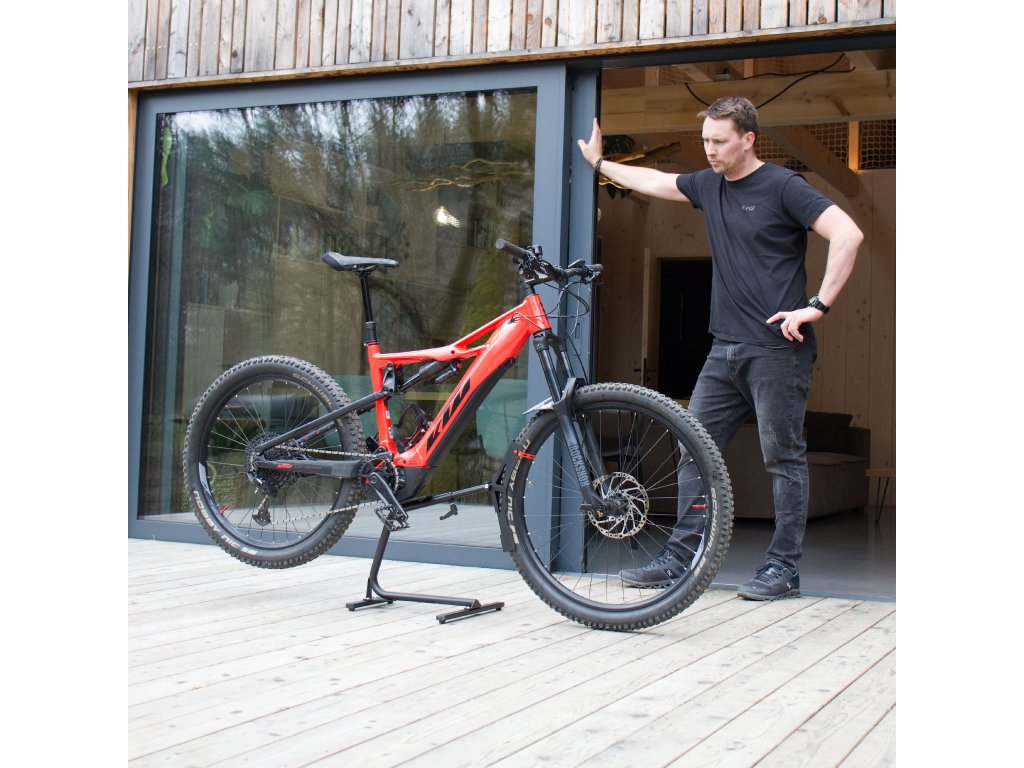 MXstyle è stato sviluppato appositamente per le e-bike con motore centrale, che spesso sono più pesanti delle biciclette tradizionali. Grazie alla sua struttura robusta e all'elevata capacità di carico fino a 45 kg, offre un supporto sicuro e stabile per la tua bicicletta, anche con carichi più pesanti. Che utilizziate il cavalletto a casa, in officina o in viaggio, potete stare certi che la vostra e-bike rimarrà stabile e sicura, pronta per il prossimo utilizzo.