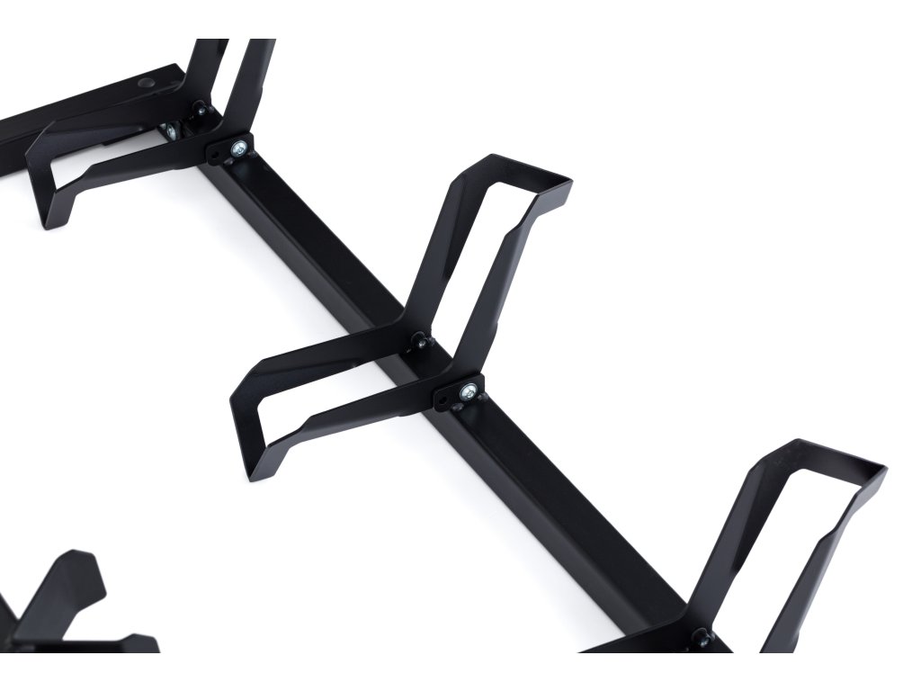 Struttura unica che non danneggia né i cerchioni né il telaio o la forcella della bicicletta! Grazie al braccio di sollevamento, la bicicletta tocca il cavalletto solo con le ruote ed è inoltre fissata in modo estremamente saldo.